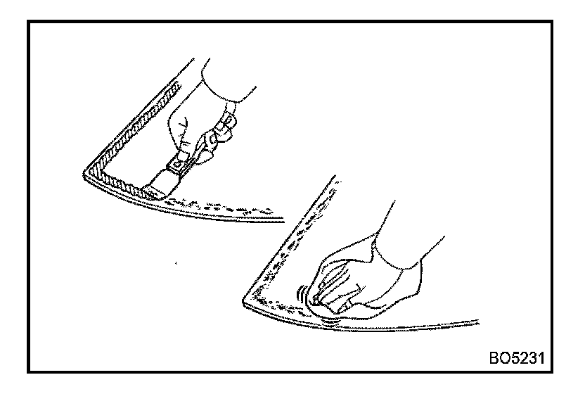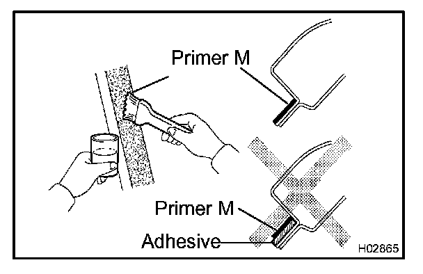 a. Using a brush or sponge, coat the edge of the glass and the contact surface with Primer G.
