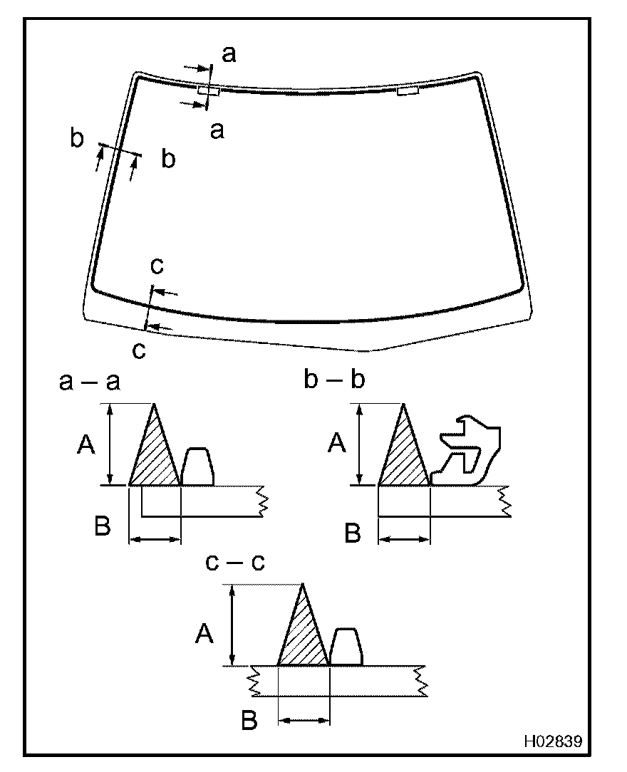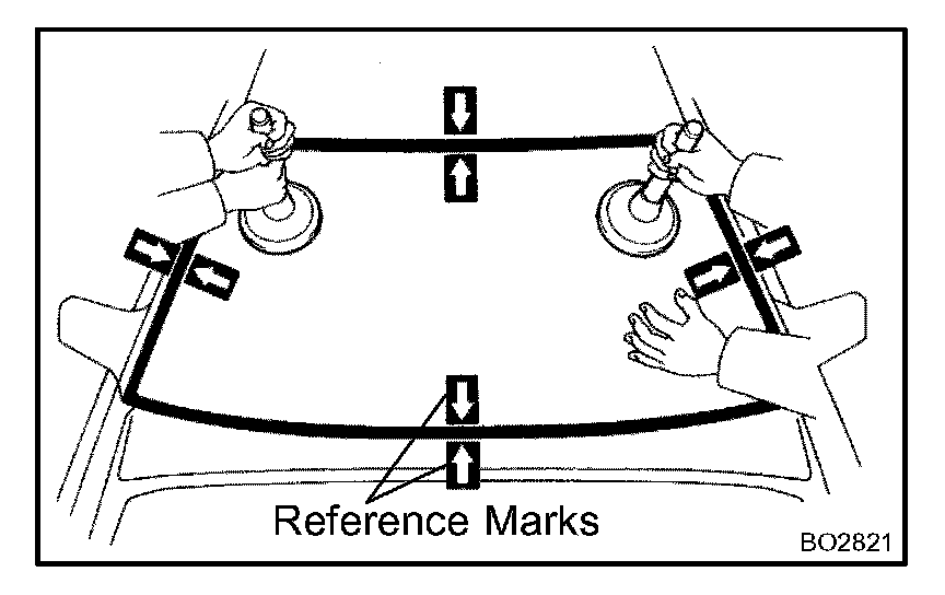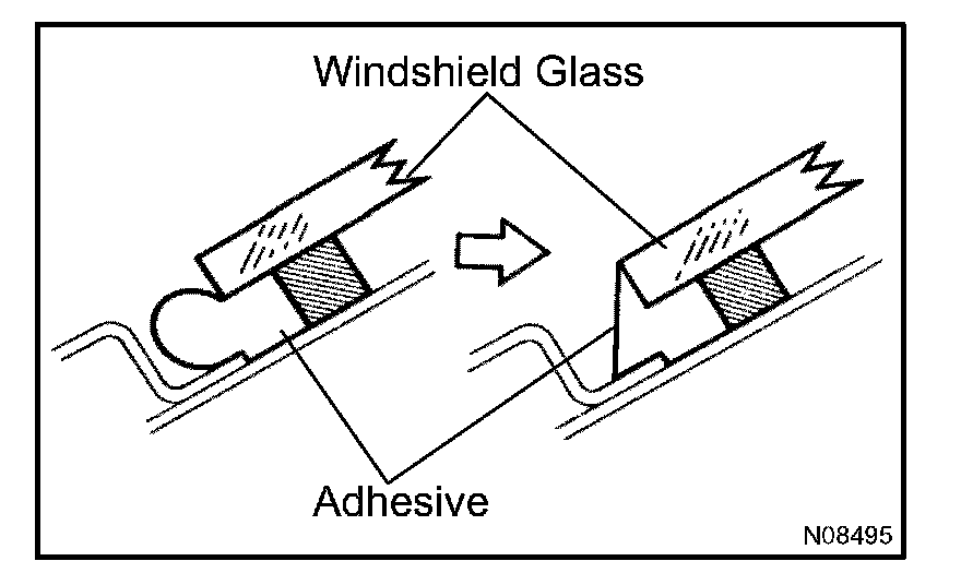 d. Hold the windshield glass in place securely with a protective tape or equivalent until the adhesive hardens.