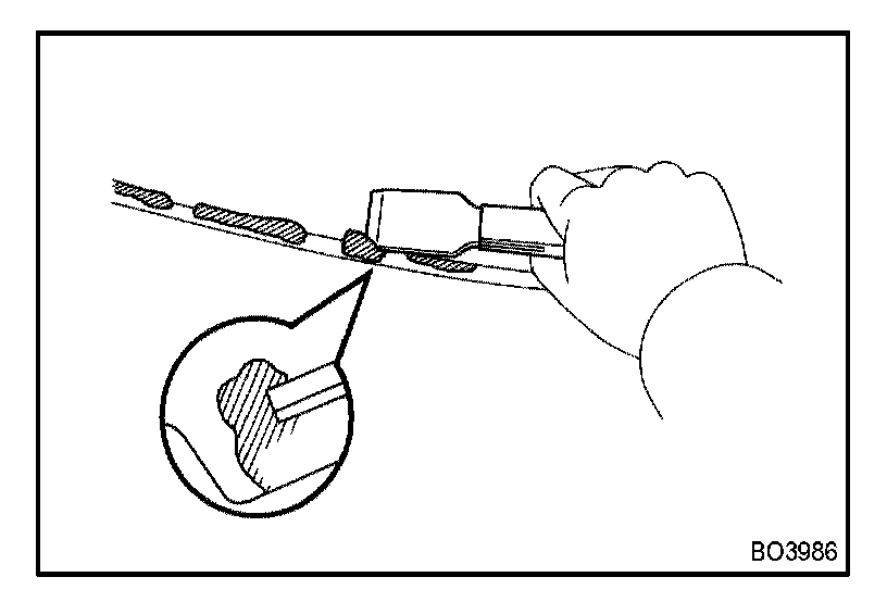 a. Push piano wire through between the body and glass from the interior.