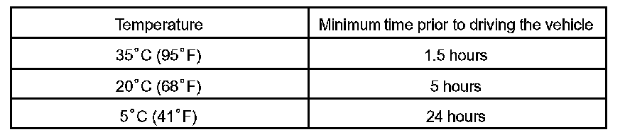 NOTE: Take care not to drive the vehicle during the time described in the table.