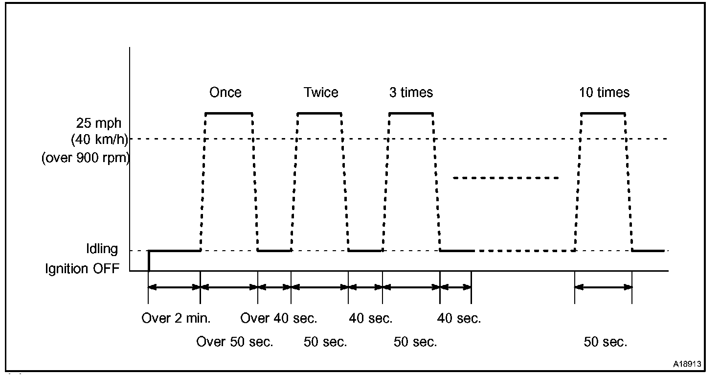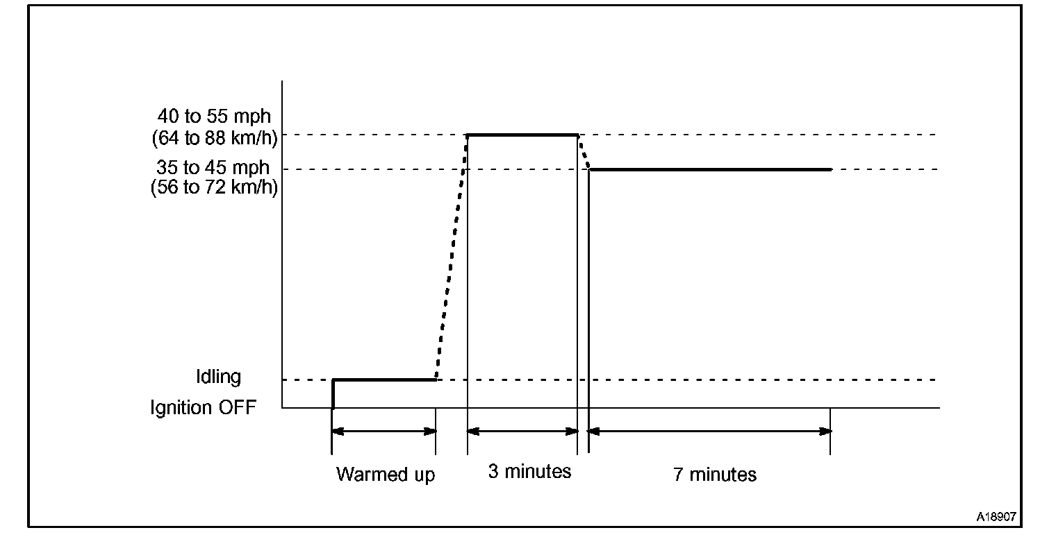 If IAT is less than 10°C (50°F) when engine was started, drive the vehicle at 40 to 55 mph (64 to 88 km/h) for additional 4 minutes.