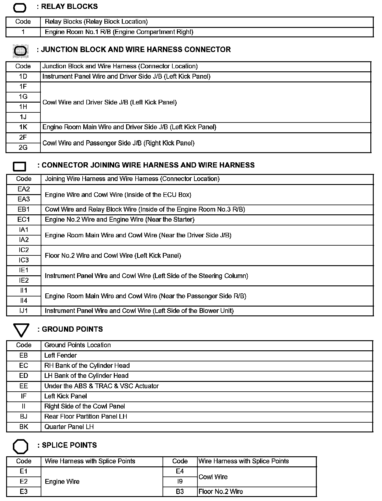 Locations: The locations of components, connectors, ground points, and splices referred to within these diagrams can be found at Vehicle Locations. Locations