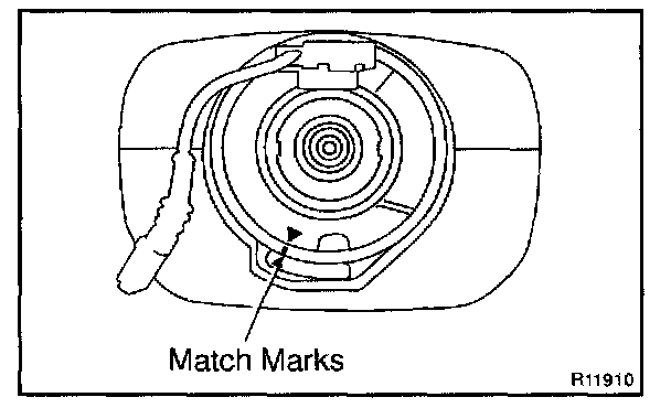 The steering wheel must be fitted correctly to the steering column with the spiral cable at the neutral position, otherwise cable disconnection and other troubles may result.