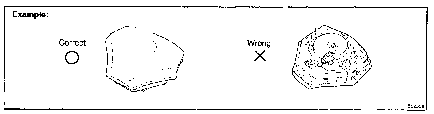 1. When removing the steering wheel pad or handling a new steering wheel pad, it should be placed with the pad top surface facing up.