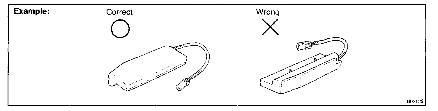 1. Always store a removed or new side airbag assembly with the airbag deployment direction facing up.