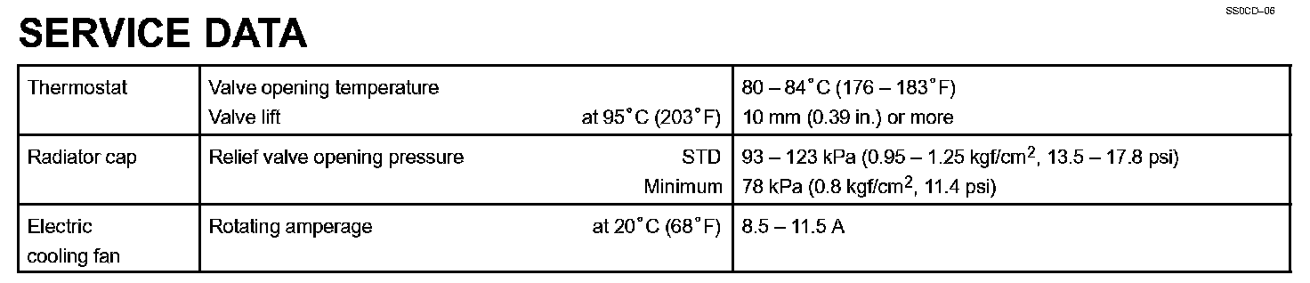 Cooling - Service Data: