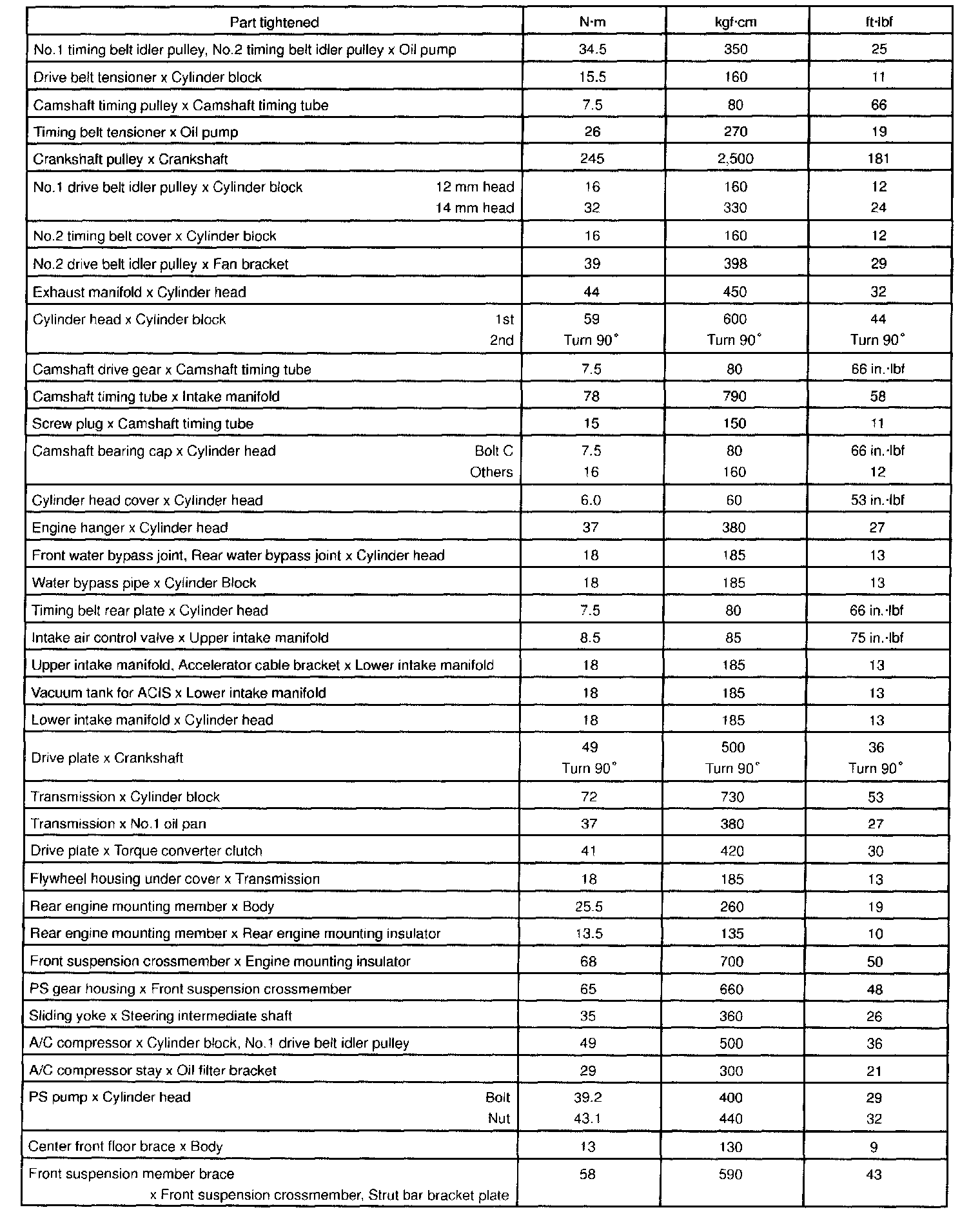 Torque Specification