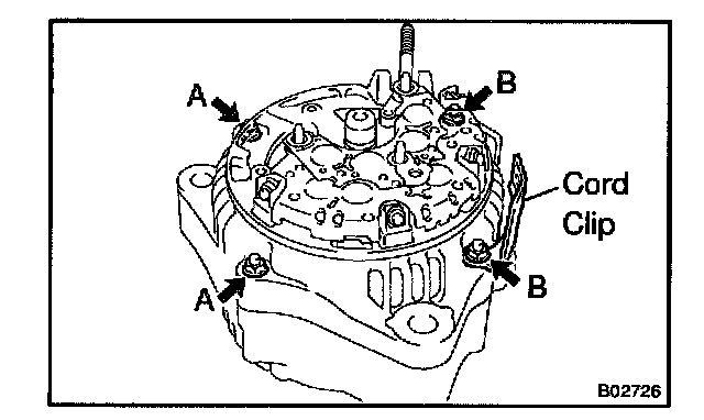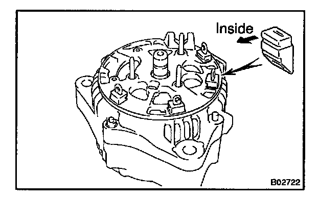 b. Place the voltage regulator and brush holder on the rectifier end frame.