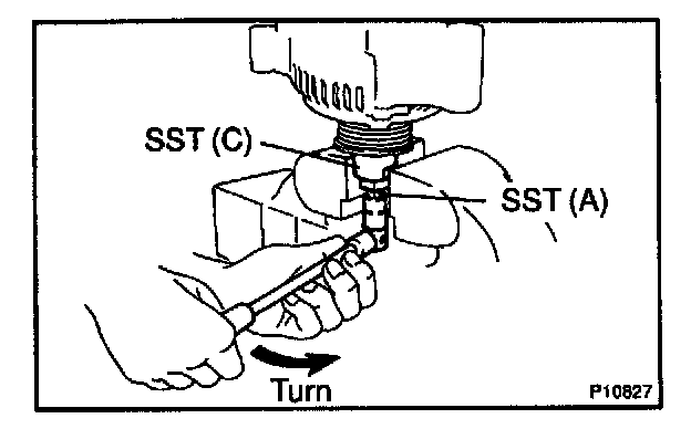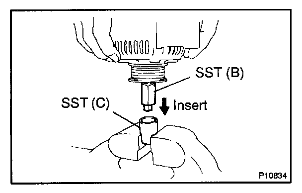 e. Insert SST (B) into SST (C), and attach the pulley nut to SST (C).