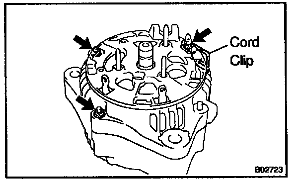 c. Install the cord clip and 3 nuts, and temporarily tighten the 3 nuts.