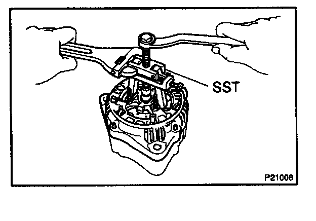 f. To torque the pulley nut, turn SST (A) in the direction shown in the illustration.