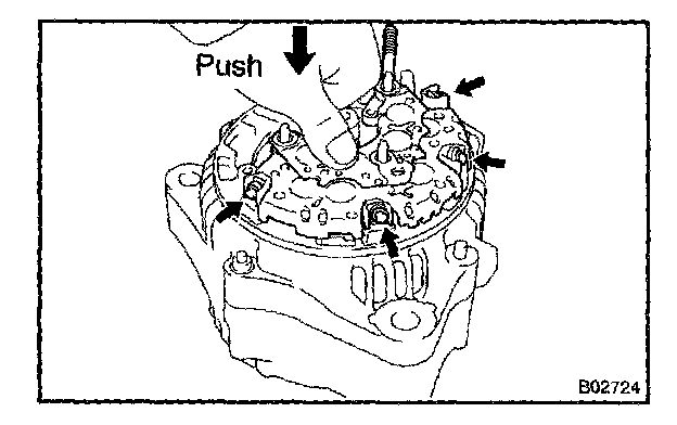 b. Install the rectifier holder while pushing it with the 4 screws.