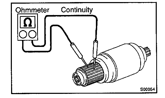 Disconnect the negative (-) lead from the switch body. Check that the clutch pinion gear returns inward.