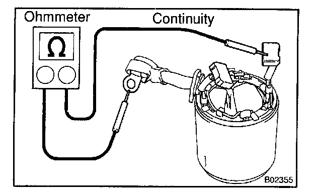 Using an ohmmeter, check that there is continuity between the lead wire and field coil brush lead.