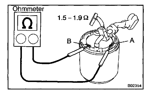 Using an ohmmeter, measure the resistance between shunt coil terminals A and B.