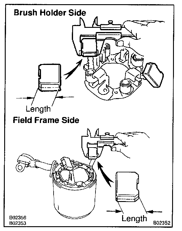 If the length is less than minimum, replace the brush holder and field frame