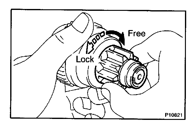 Hold the starter clutch and rotate the pinion gear clockwise, and check that it turns freely. Try to rotate the pinion gear counterclockwise and check that it locks.