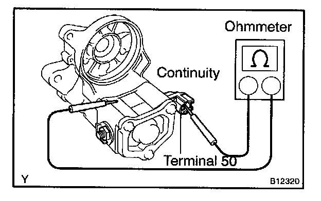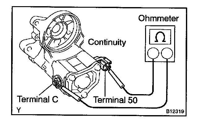 Using an ohmmeter, check that there is continuity between terminals 50 and C.