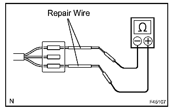 b. If it is impossible to check resistance from the back of the connector, use a repair wire to check it.