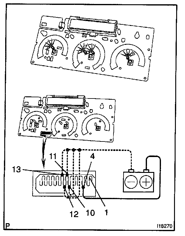 b. Connect the positive (+) lead from the battery to terminal 1 and check that the each indicator dims.