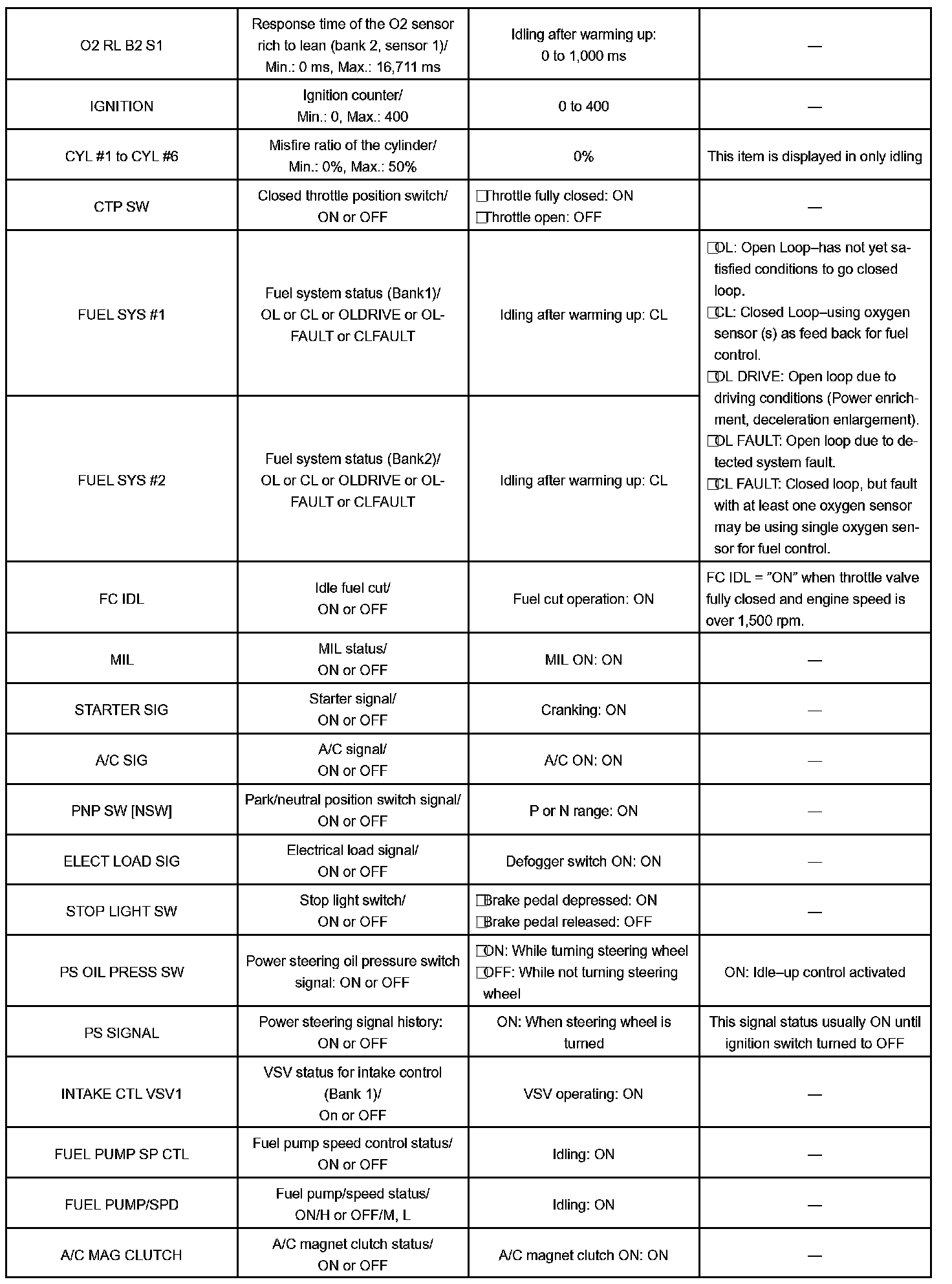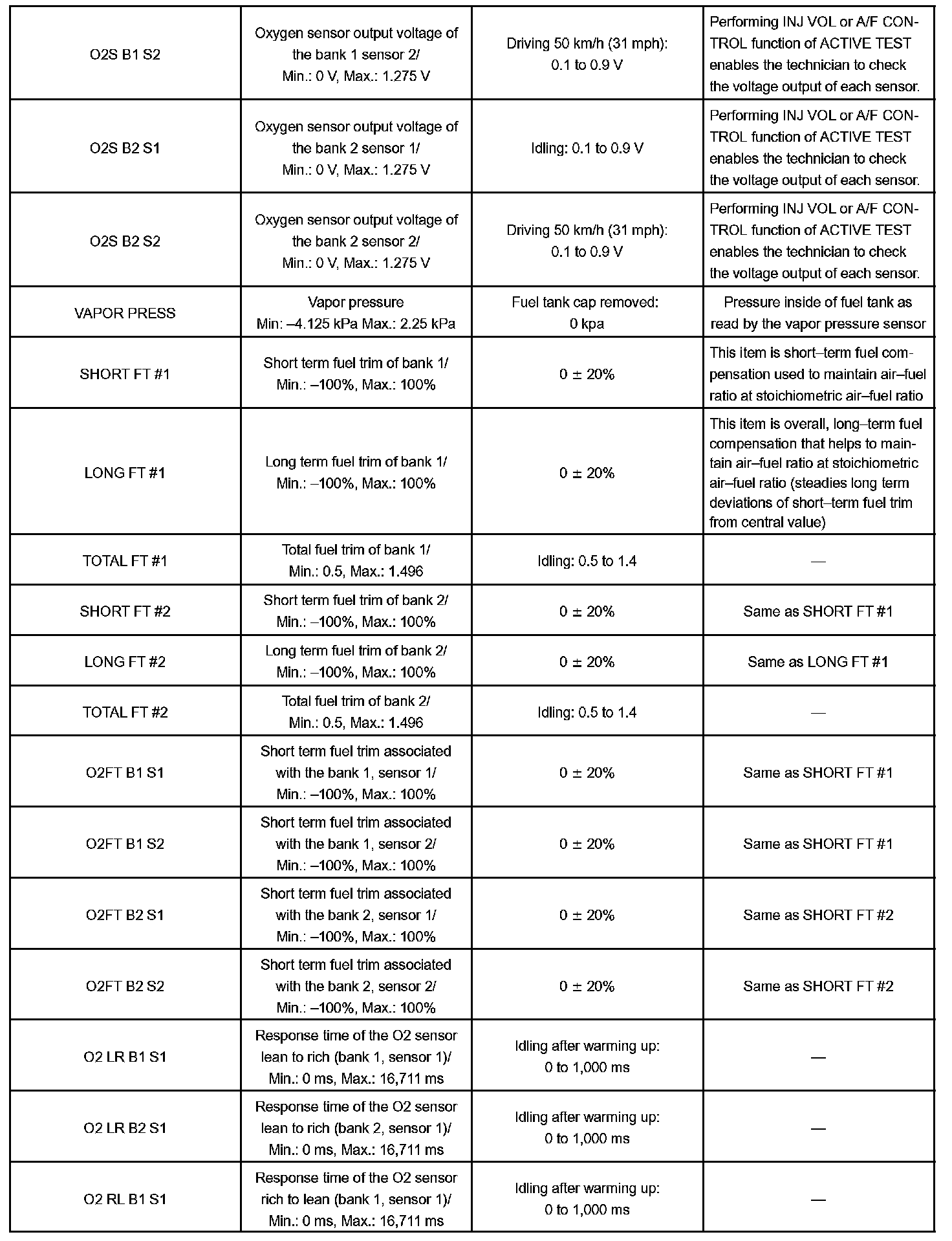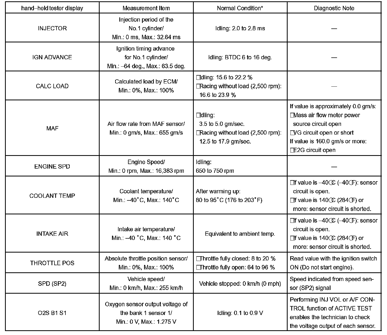 DATA LISTHINT: By reading the DATA LIST displayed on a hand-held tester, you can check values, including those of the switches, sensors, and actuators without removing any parts. Reading the DATA LIST as the first step of troubleshooting is one method of shortening diagnostic time.
