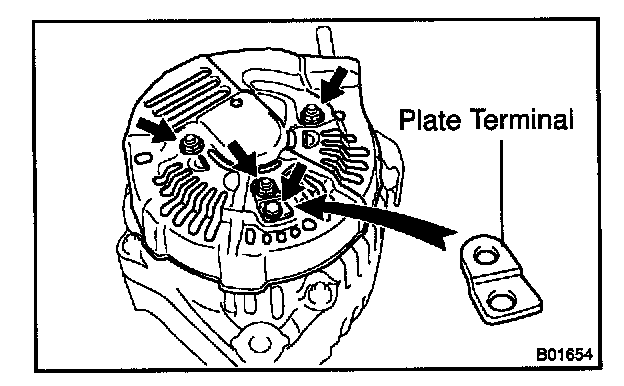 b. Remove the bolt, 3 nuts, plate terminal and end cover.
