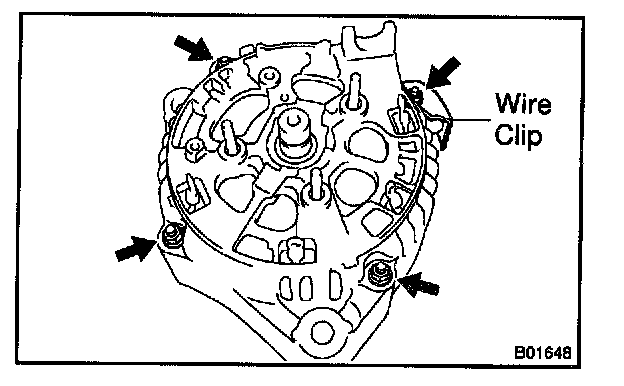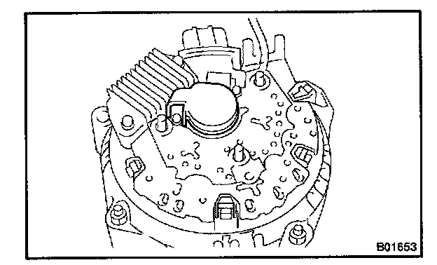 b. Place the voltage regulator and brush holder on the rectifier end frame.