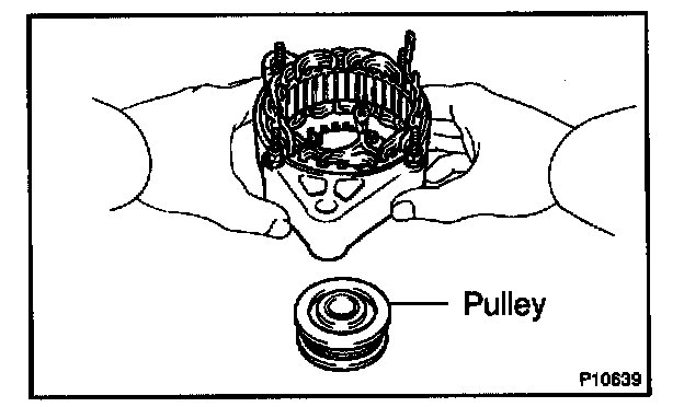 a. Install the pulley to the rotor shaft by tightening the pulley nut by hand.