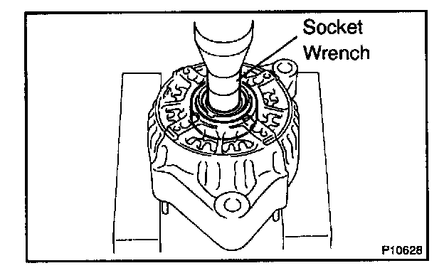 b. Using a 29 mm socket wrench and press, slowly press in the rectifier end frame.