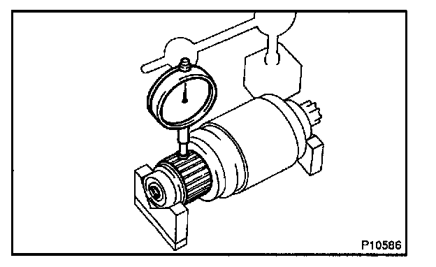 b. Check that the starter rotates smoothly and steadily with the pinion gear moving out. Check that the ammeter shows the specified current.