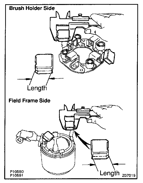 If the length is less than minimum, replace the brush holder and field frame.