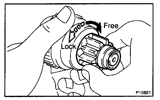 Rotate the pinion gear counterclockwise, and check that it turns freely. Try to rotate the pinion gear clockwise and check that it locks.