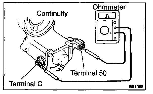 Using an ohmmeter, check that there is continuity between terminals 50 and C.