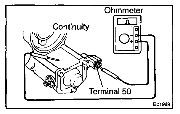 Using an ohmmeter, check that there is continuity between terminal 50 and the switch body.