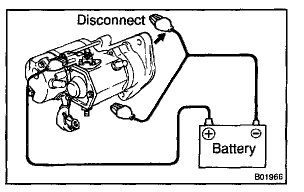 Disconnect the negative (-) lead from the starter body.