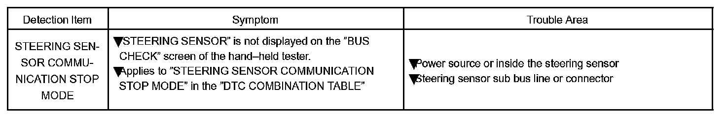 STEERING SENSOR COMMUNICATION STOP MODE