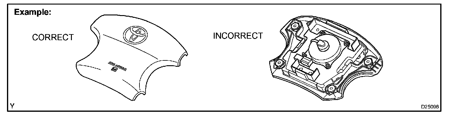 1. Always place a removed or new front seat airbag assembly with the airbag inflation direction facing up.