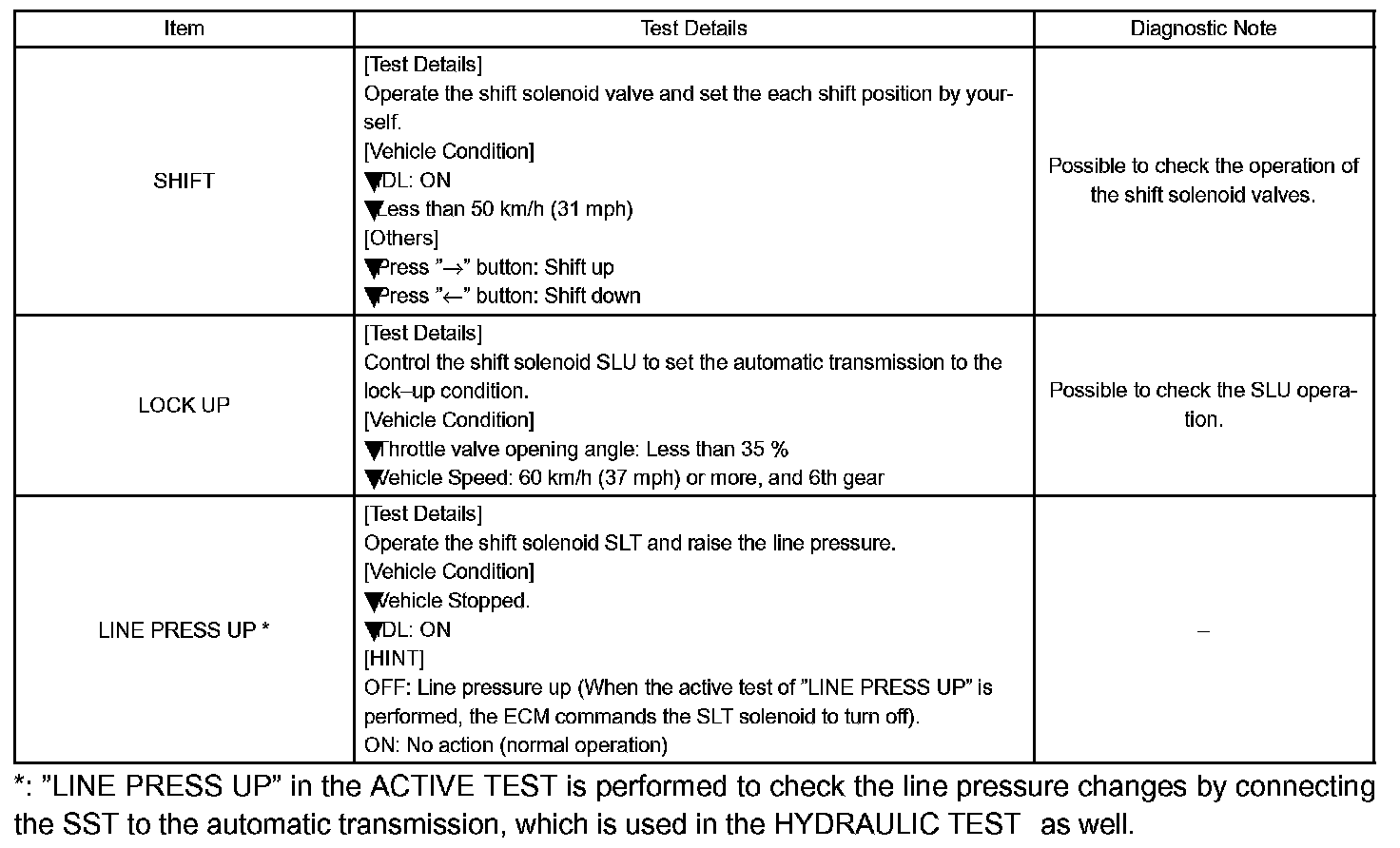 HINT: The pressure values in ACTIVE TEST and HYDRAULIC TEST are different from each other.