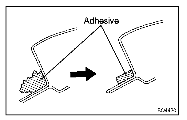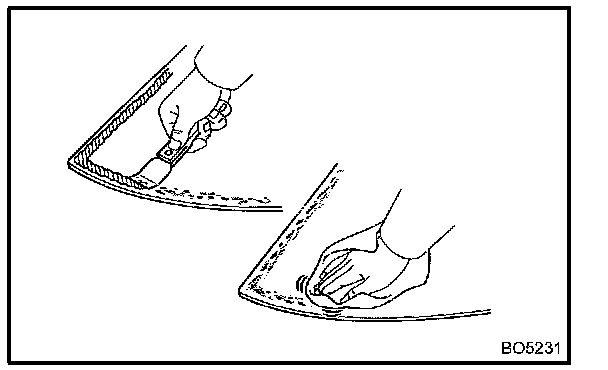 b. Cut off the old adhesive around the clips and spacers installation area.