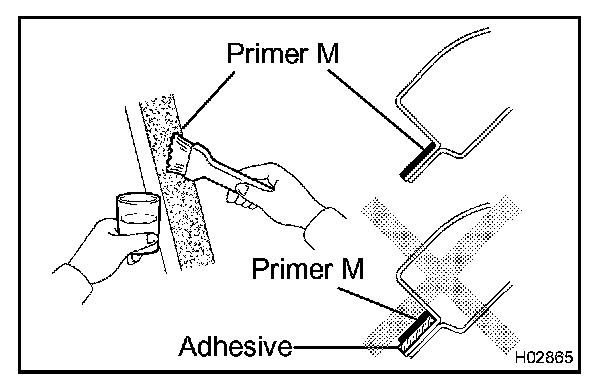 a. Using a brush or sponge, coat the edge of the glass and contact surface with Primer G.