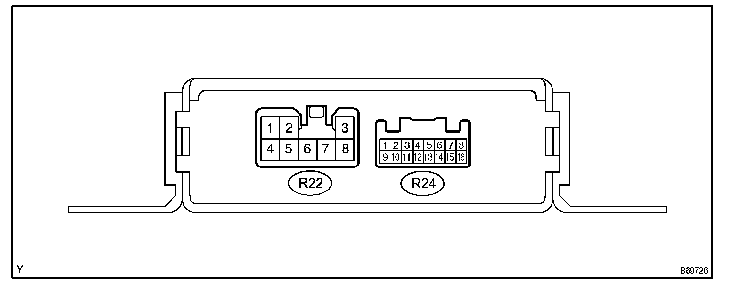 d. Check the voltage of each terminal of the R24 ECU connector.