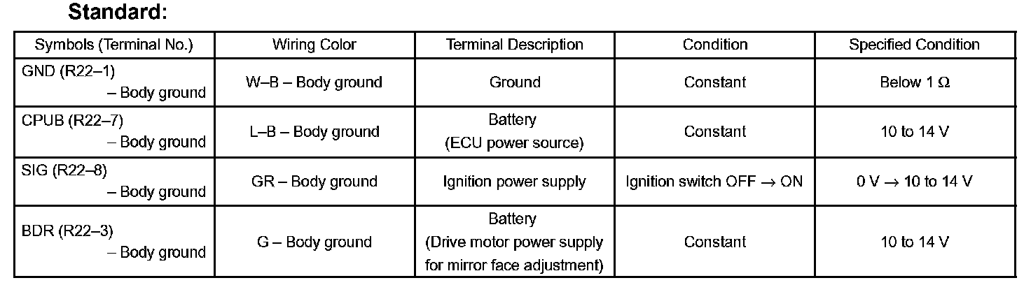 If the result is not as specified, replace the mirror assy or the ECU may be malfunctioning.