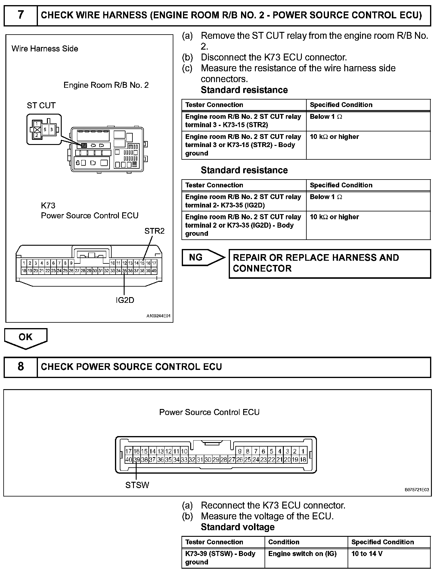 g. The ECM and power source control ECU activate the ST relay.