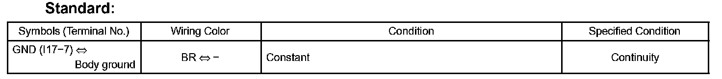 a. Disconnect the I17 amplifier connector, and check the continuity of each terminal of the wire harness side connector.