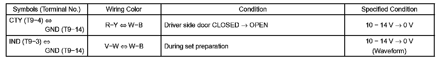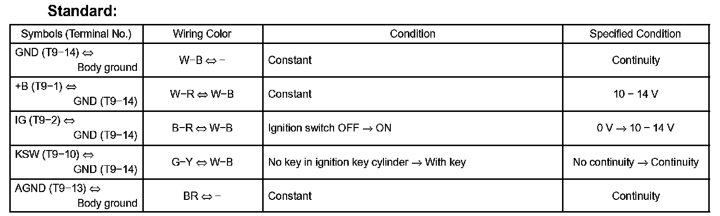a. Disconnect the T9 ECU connector, and check the voltage or continuity between each terminal of the wire harness side connector.