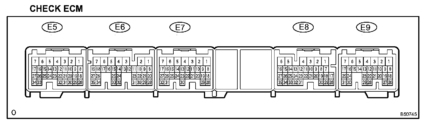 a. Disconnect the E7 and E8 ECM connectors, and check the voltage or continuity between each terminal of the wire harness side connectors.