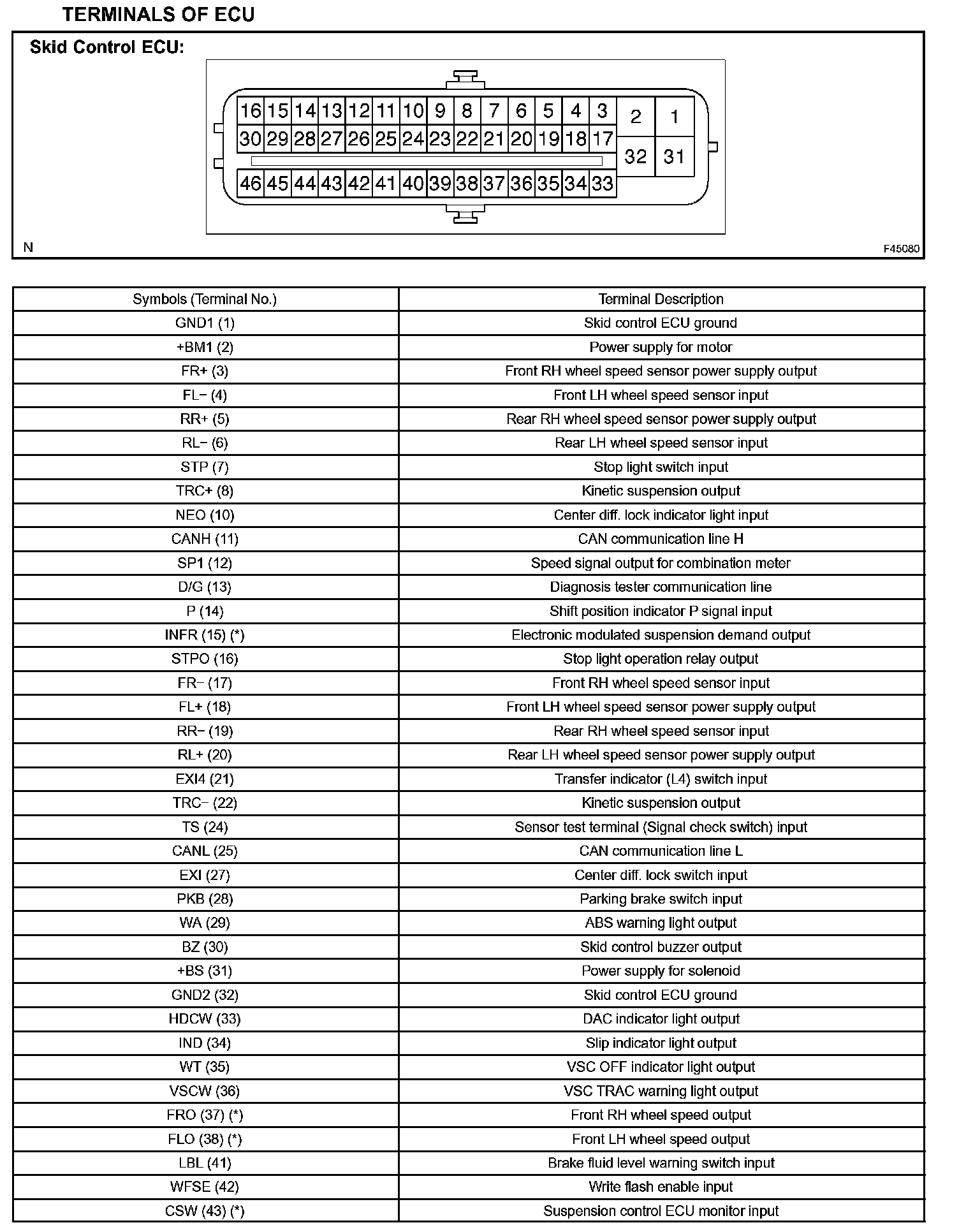 Terminals Of Control Module/Pinouts: