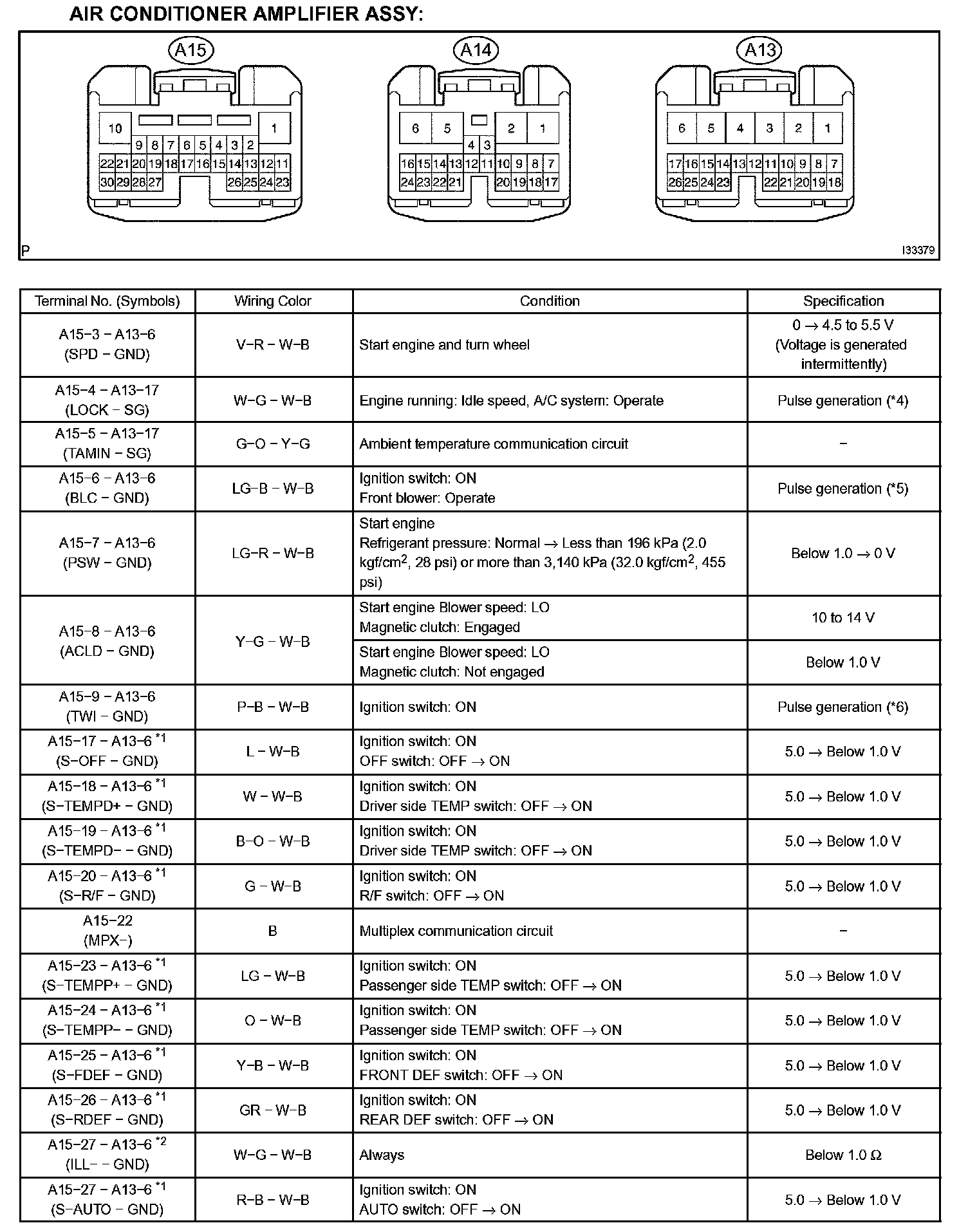 Terminals Of Control Module/Pinouts-Air Conditioner Amplifier Assy (Part 1):