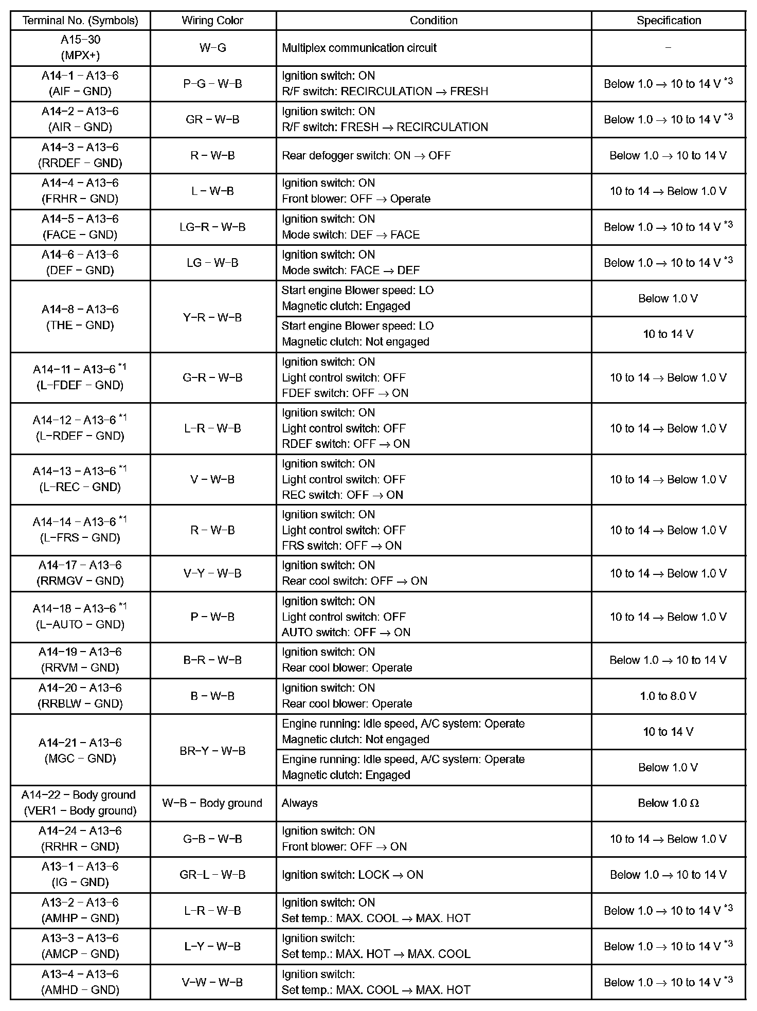 Terminals Of Control Module/Pinouts-Air Conditioner Amplifier Assy (Part 3):