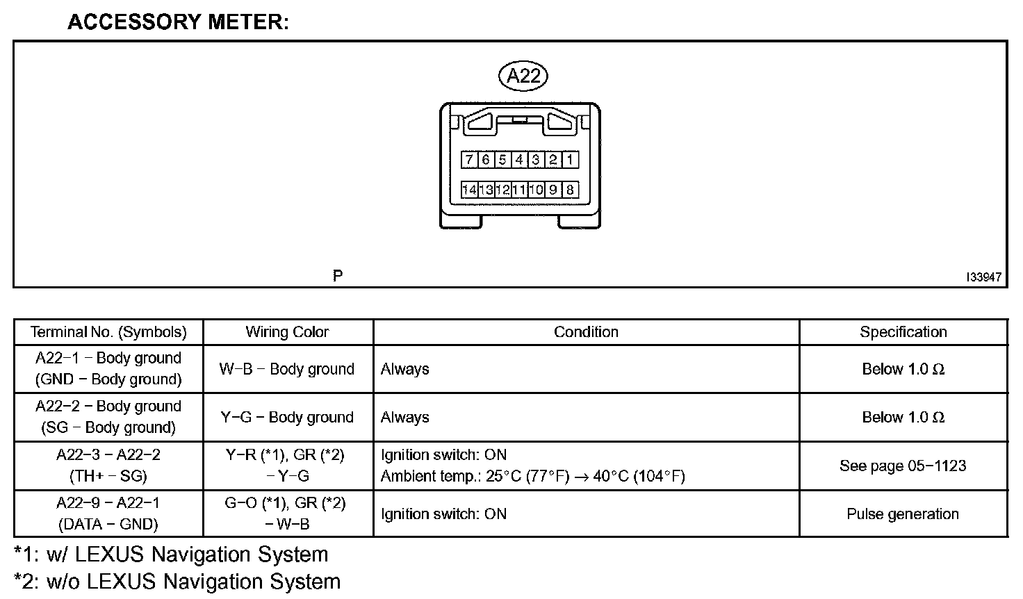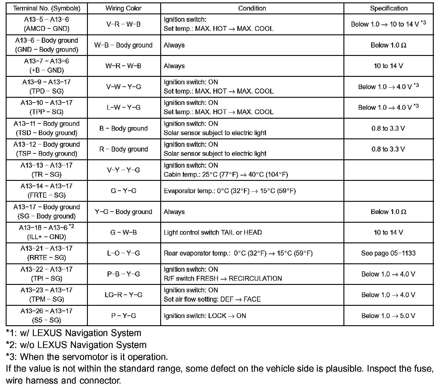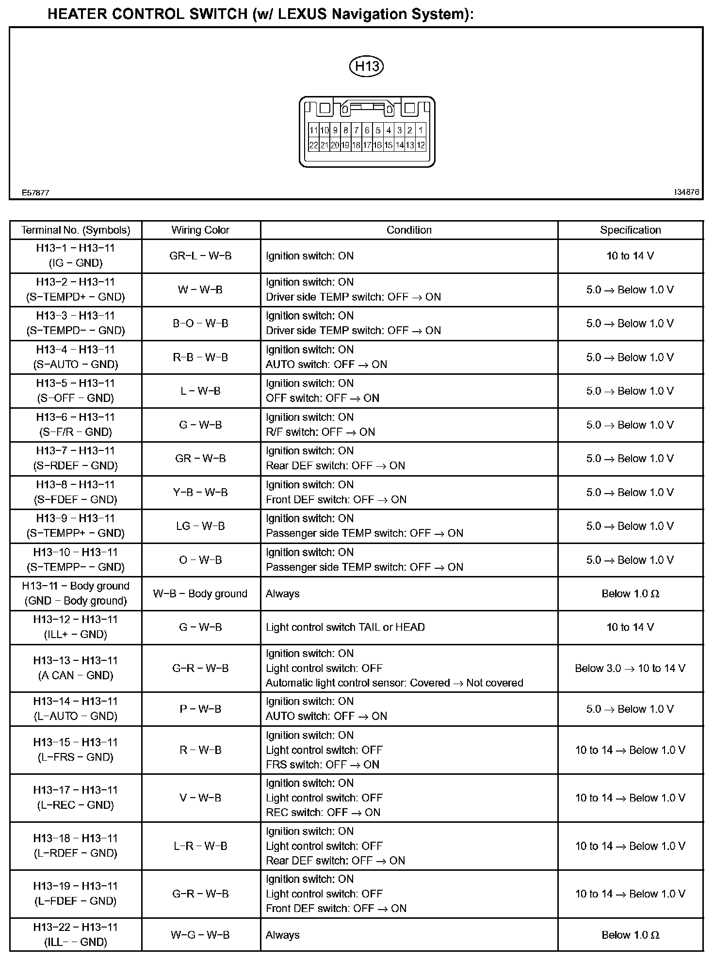 Terminal Of Control Module/Pinouts-Heater Control Switch (w/ Lexus Navigation System):